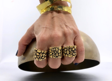 Per tutte le amanti del dorato, i modelli riprodotti sono quelli disegnati originariamente e prodotti in argento, lavorati dagli stessi artigiani con un materiale diverso. Una linea calda che mette in evidenza la grande manualitàdegli stessi artigiani orafi.
